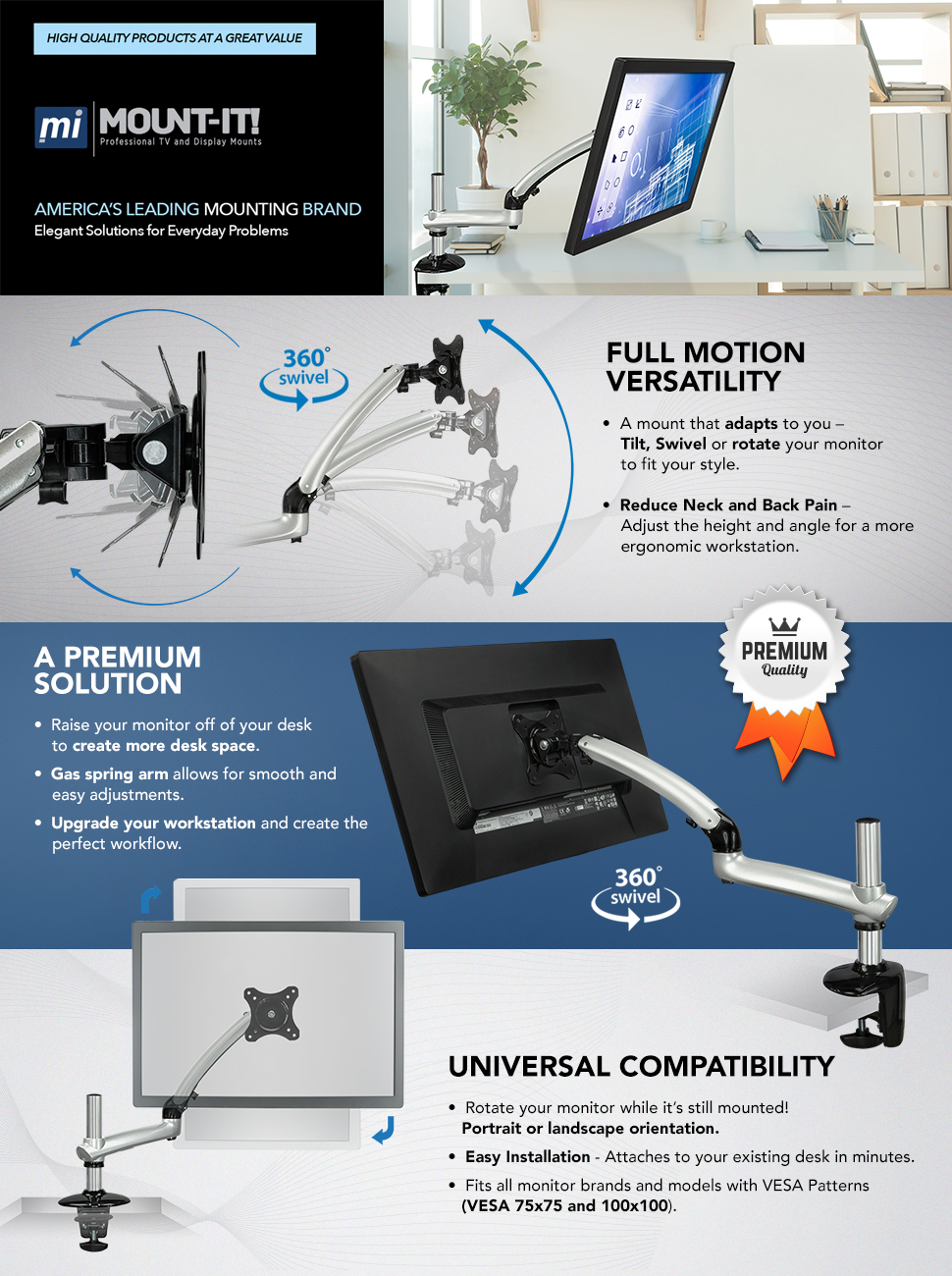 Hey my bro, Many thanks for visiting our Website. Are you currently trying to find facts about Mount-It! Single Monitor Desk Mount Arm With Height Adjustable Gas Spring | Universal VESA Bracket Fits 75x75 and 100x100mm Computer Screens, Full Motion Premium Design, SilverThe Good News, Right now we're giving big as much as 75% for people who buy Mount-It! Single Monitor Desk Mount Arm With Height Adjustable Gas Spring | Universal VESA Bracket Fits 75x75 and 100x100mm Computer Screens, Full Motion Premium Design, Silver products through this Website.Not just that, you'll even get yourself a absolutely free discount in the event that you order today.Thanks for watching and please give a thumbs up.